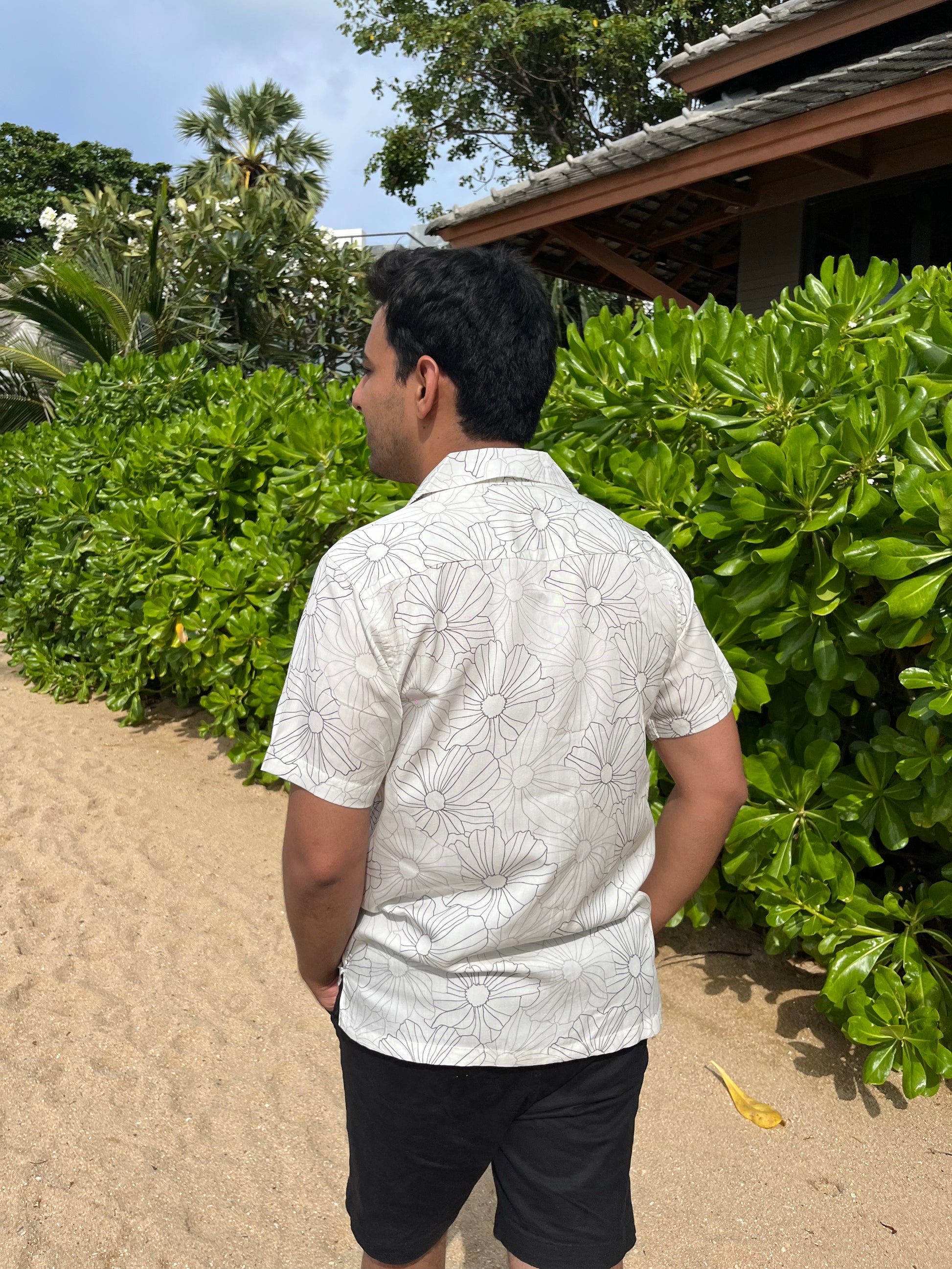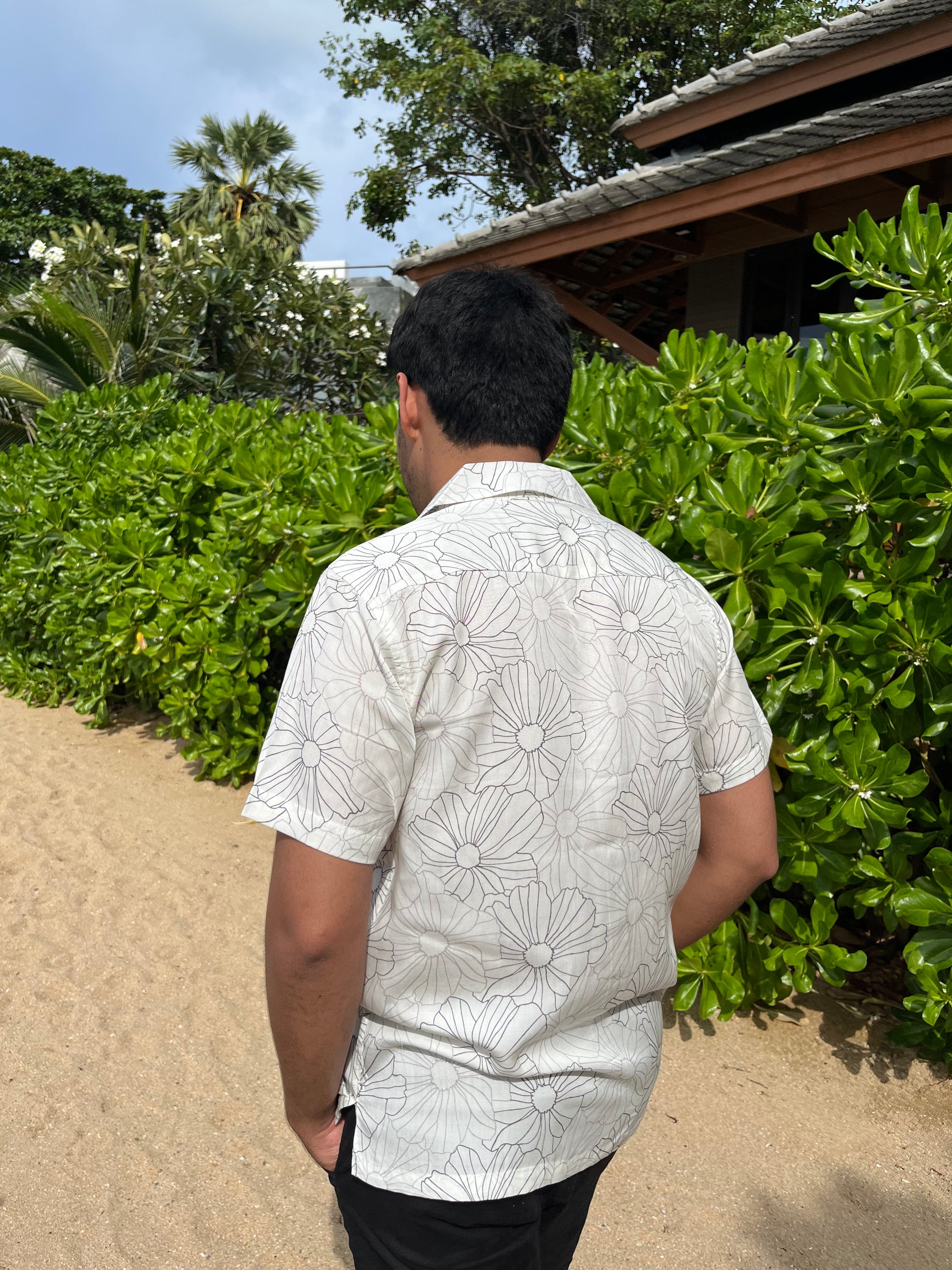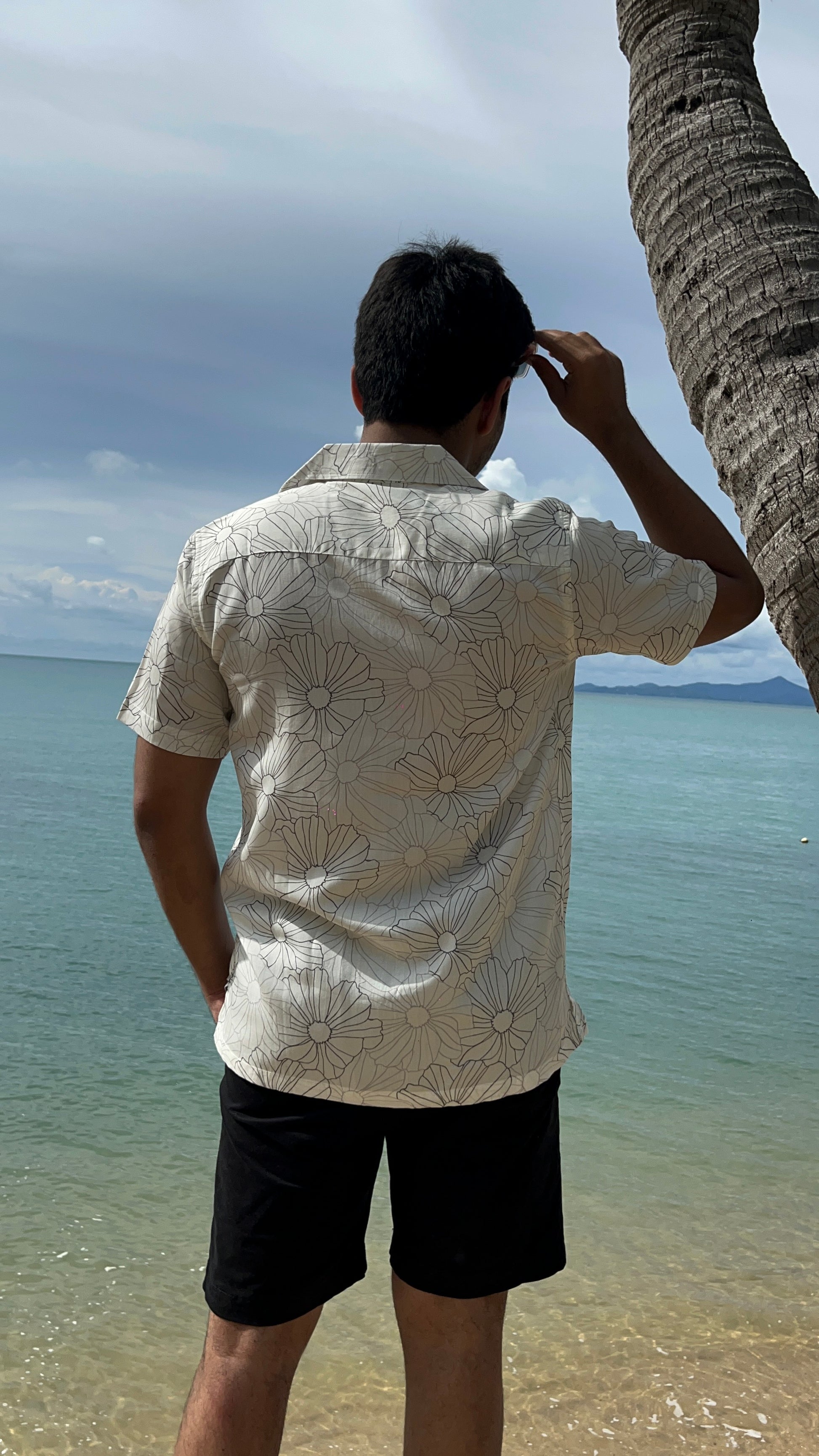 Embrace a fresh, flowy vibe with the cream floral print Tencel twill shirt a blend of nature-inspired beauty and unmatched comfort. Made from ultra-soft and eco-friendly Tencel twill, this shirt is as gentle on your skin as it is on the planet. The soft cream backdrop is adorned with delicate floral patterns, adding a subtle pop of color that’s both charming and versatile.